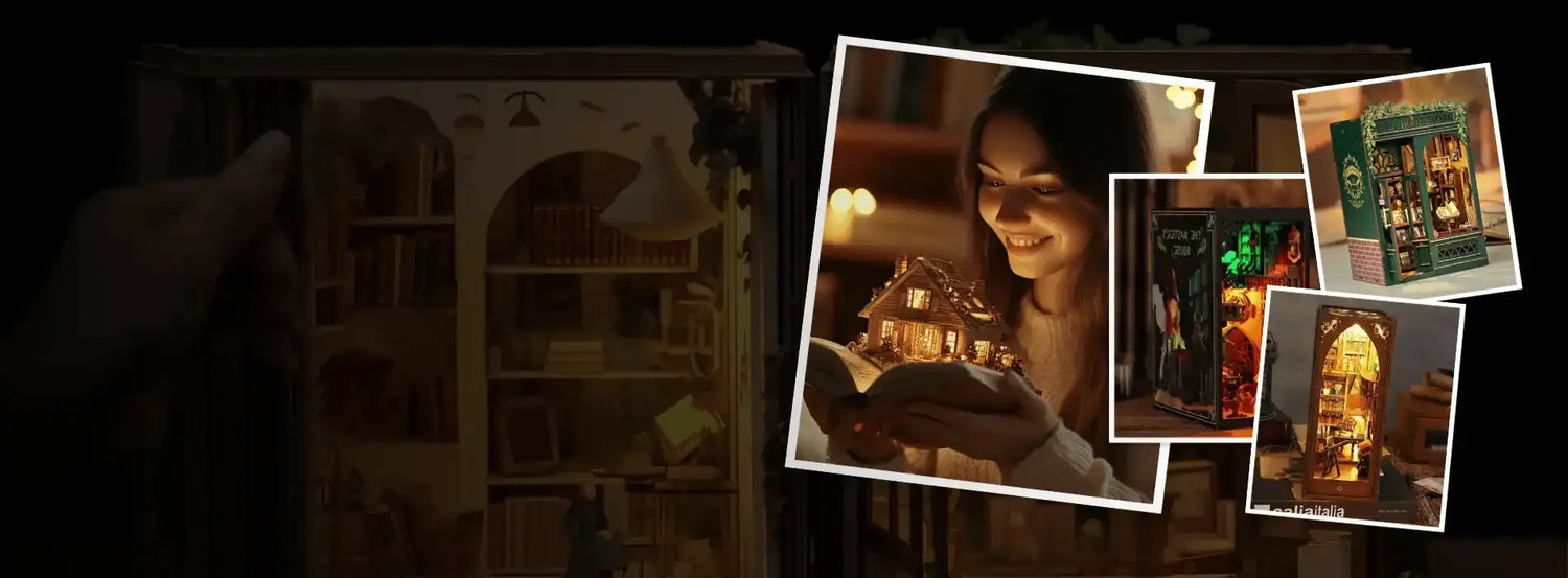 Welcome to BookNookStore.com, Your Ultimate Destination for DIY Book Nook Kits. At Book Nook Store, we pride ourselves on offering a unique collection of enchanting and high-quality book nook kits, carefully curated to bring your imagination to life. Whether you're looking for a whimsical, fantasy, or cozy theme, we have the perfect kit to match your creativity and style. Add a Touch of Magic to Your Space with Our Premium Book Nook Kits At Book-Nook-Store.com, we’re excited to offer a curated collection of enchanting book nook kits, designed to bring your imagination to life. Whether you're looking for a whimsical fantasy world, a cozy scene, or a miniature masterpiece to display on your bookshelf, we have the perfect kit for you.Each of our book nook kits is made with high-quality materials to ensure a delightful crafting experience and lasting beauty. Thoughtfully designed, our kits allow you to create unique, magical worlds that enhance your space. With a wide variety of themes and difficulty levels, you’ll find the perfect kit to suit your style and skill level.